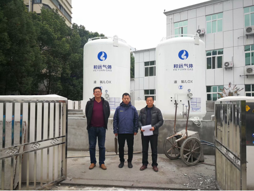 该医院用氧由湖北和远气体股份有限公司生产提供,并为其生产线配套建设了一座氧气气化站,其规模为5m³液氧储罐两个,并配备相应的气化装置。湖北和远气体股份有限公司是一家主要从事各种工业气体的生产及销售的民营企业。公司成立于2003年,是湖北省气体生产、供应、综合应用专业气体厂家之一。液氧由湖北和远气体股份有限公司通过液体罐车运到该医院,再灌装到液氧储罐,经气化后供该医院使用。