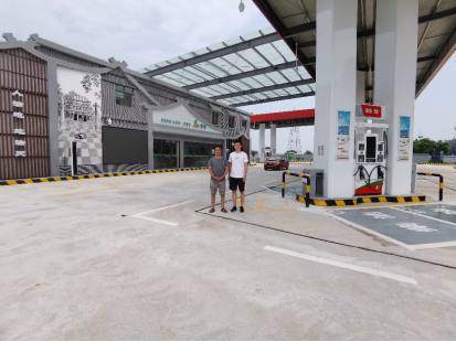 加油罩棚区二:位于站房东北侧,加油机东西向单排布置,设2个加油岛,布置2台92#、95#、98#汽油四枪四油品加油机。