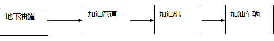 加油工艺:加油作业时,采用潜油泵提供的动力,油品通过加油管道至加油机,进入受油容器。同时,加汽油作业时,有油气回收回收系统,汽油蒸汽通过油气回收管道回至汽油罐。具体流程见下图: