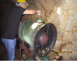 该矿采用抽出式机械通风系统,矿山在XJ390回风斜井口安装一台矿用节能风机,并设有反风装置,能进行反风。通风设施较为完善,布局合理。矿山供风量能满足矿山生产需要,有毒有害气体浓度未超过《规程》规定。矿山制定有通风管理制度,建立有测风测气档案资料。矿山的通风设施、通风能力、通风效果与质量、反风设施、通风管理符合规定要求。