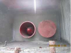 该矿采用抽出式机械通风系统,矿山在PD450-2回风硐口安装2台矿用节能风机,并设有反风装置,能进行反风。通风设施较为完善,布局合理。矿山供风量能满足矿山生产需要,有毒有害气体浓度未超过《规程》规定。矿山制定有通风管理制度,建立有测风测气档案资料。矿山的通风设施、通风能力、通风效果与质量、反风设施、通风管理符合规定要求。