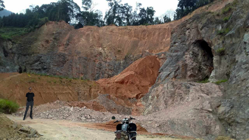 早期(80年代)矿山硐采平硐位于3号勘探线上,掘进方向与岩体走向基本一致,系沿脉平硐,其纵深仅12m,宽度5~7m,标高约+295m。目前矿区范围内已形成一个露天采场,采场内由多个台阶组成,底平台标高为+295.34m,长约63m,宽约34m;+307.62m平台长约75m,宽约66m;+340.13m平台长约2~3m,宽约6~15m;+347m平台长约130m,宽约2~3m。
