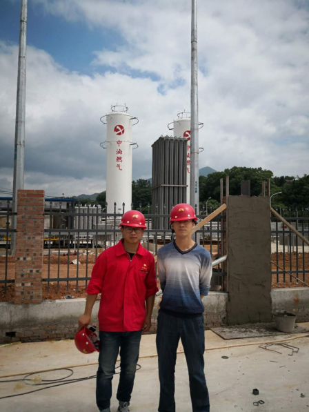 LNG气化站包括2个60m³LNG低温立式储罐、1台300m³/h的EAG加热器、1台200m³/h的BOG加热器、1台300m³/h的卸车增压器、2台1200m³/h的空温气化器、1台2400m³/h的电辅热加热器、一台 LNG调压计量加臭撬、工艺管道以及仪表控制系统等,供气规模:2400m³/h。