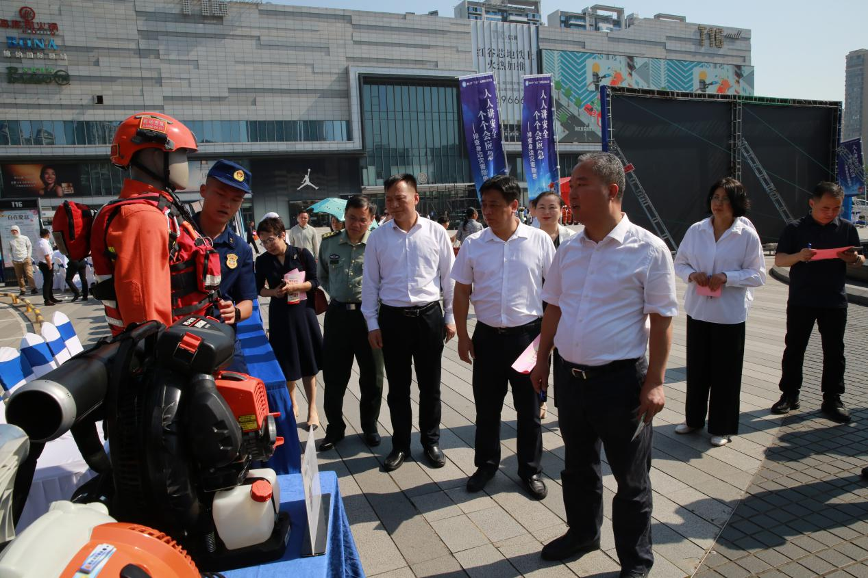5月12日上午开幕式现场,同步设置了各类防灾减灾宣传咨询台,江西省应急管理厅、南昌市应急管理局、红谷滩区防灾减灾救灾38家相关单位在展台前摆放了防灾减灾安全相关宣传展板、发放有关宣传物料、解答群众咨询、展示救援装备,向群众详细讲解暴雨、洪涝、火灾、地震等各类自然灾害防范应对知识和自救互救技能,活动现场还模拟发生地震场景,开展了地震、踩踏救援、商场火灾、电梯故障等应急演练,国家消防救援局江西机动队伍、红谷滩区专业森林消防救援大队等综合性救援队伍及红谷滩区卫东等街道居民参加演练。